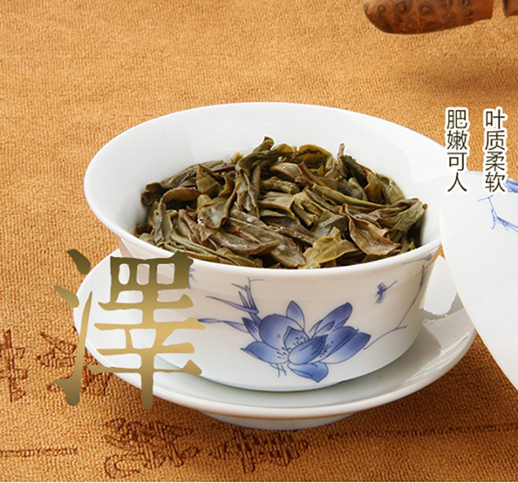 茗山雲露·布朗山茶葉屬喬木大葉種,湯色橙黃透亮(liàng),口感濃烈,回甘快、生津強,香氣獨特(杯底有麥芽糖的(de)香味)。