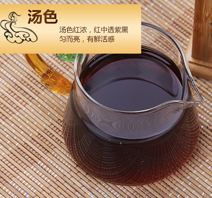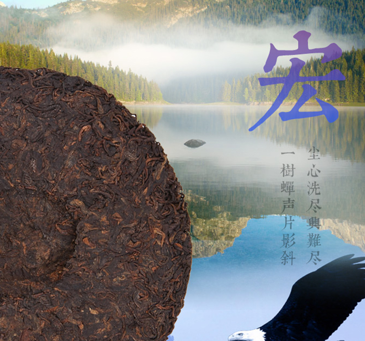 高(gāo)端熟茶·宏圖,條索勻整緊結,色澤褐潤尚顯毫,湯色紅(hóng)濃明亮(liàng),滋味醇厚回甘,陳香濃純。茶如(rú)人生,句短(duǎn)味長(cháng)。